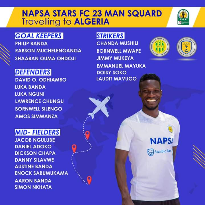 Napsa Stars left for Algeria ahead of their last CAF Confederation Cup group stage fixture against Jeunesse Sportive de Kabylie this morning.