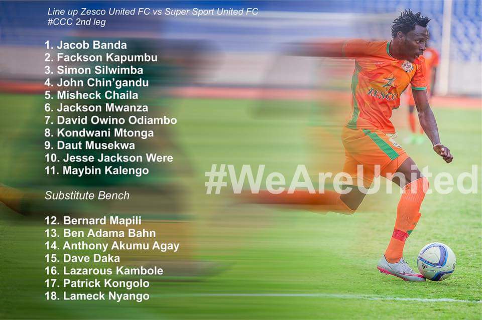 Zesco United are in action against SuperSport United of South Africa in the second leg of the CAF Confederations Cup Quarter final.
