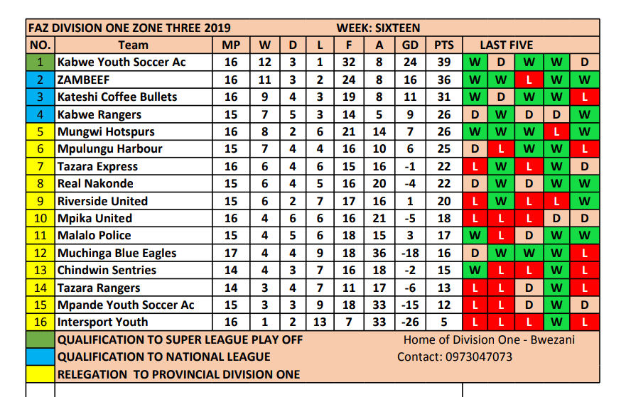 Big wins for both KYSA and Zambeef means KYSA still leading the log in Zone three and Zambeef continue chasing from behind.