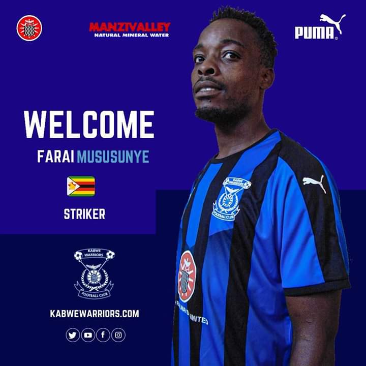 Kabwe based Zambian Super League side Kabwe Warriors have announced the signing of Zimbabwe Striker Farai Mususunye from Zimbabwean club side Shabanie Football Club.