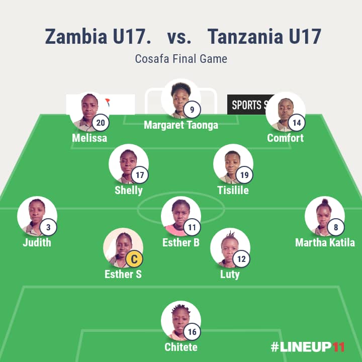 Starting Line up: Chitete Munsaka, Judith Soko, Luty Kamanga, Esther Siamfuko, Martha Katila Banda, Shelly Masumo, Tisilile Lungu, Comfort Selemani, Mellisa Mutaba, Margaret Taonga Chulu.