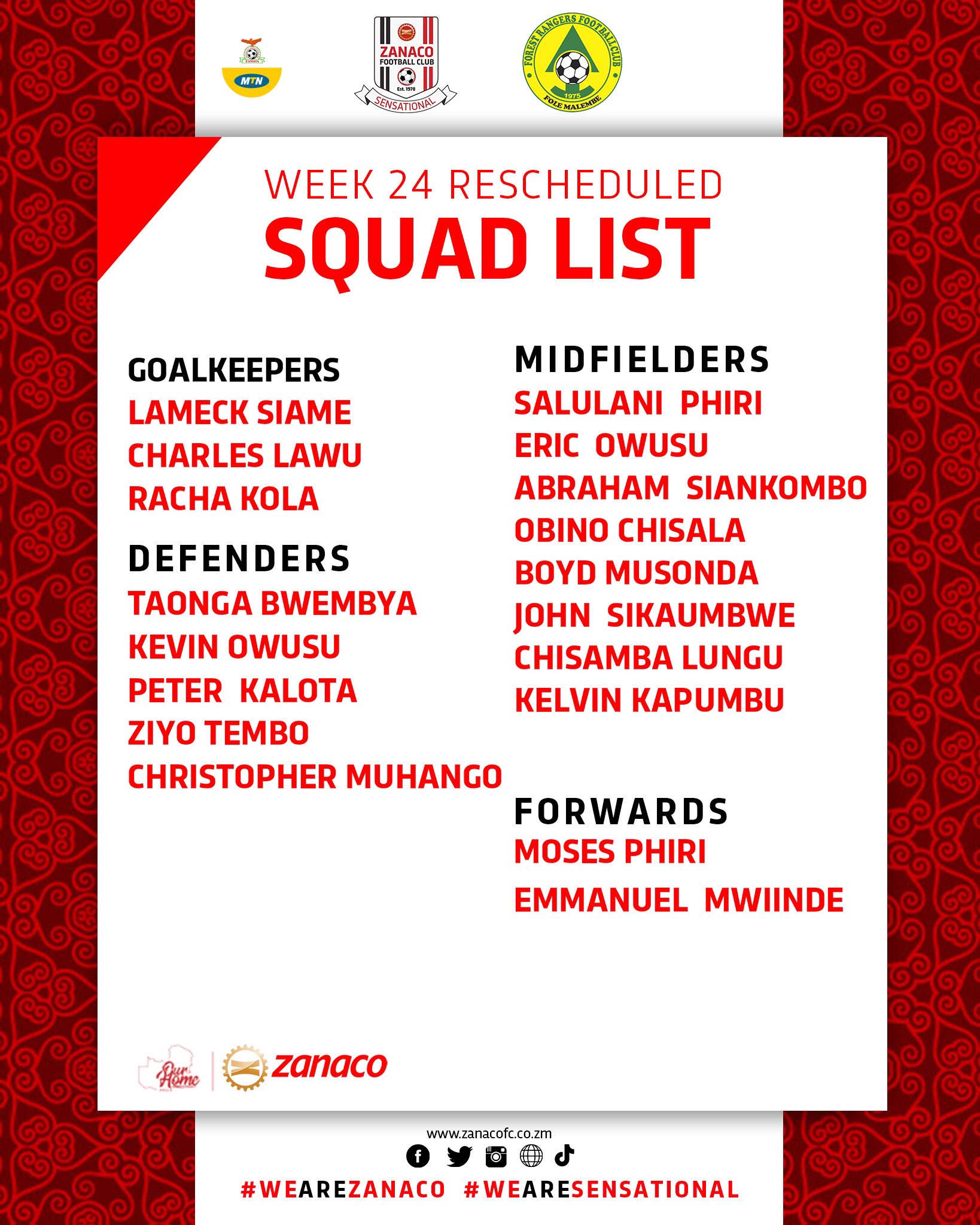 Zanaco have since brought back Ziyo Tembo and Racha Kola who were released two weeks ago to cushion their injury troubles.
