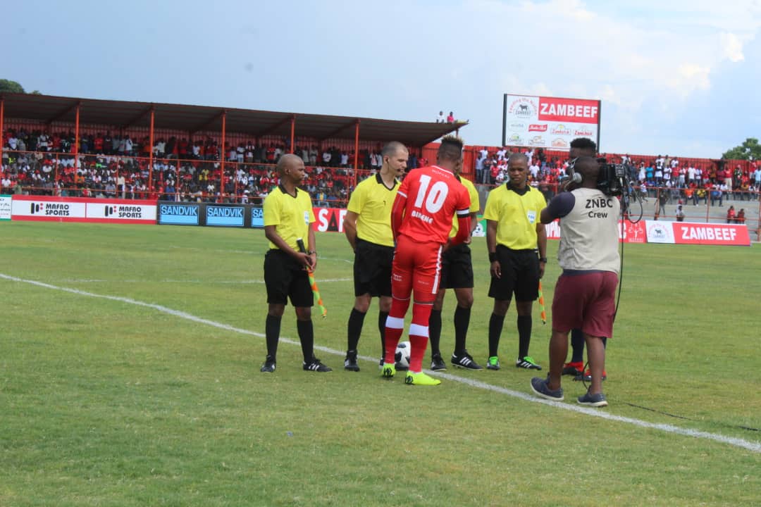 Nkana has a 2-1 caution. The game is live on ZNBC TV.