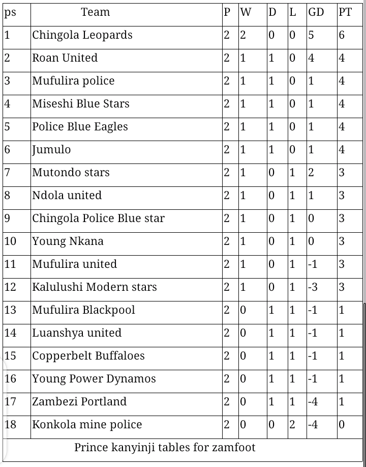 In chingola the once cleanest town of Zambia, Chingola Leopards continued with their good run of form in the league with another second clean sheet of the season from two games they have played so far after posting a 4 nil win over 17th placed Zambezi Portland a result which cemented their top spot with 6 points.