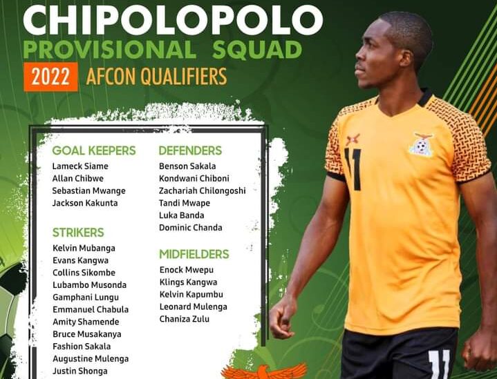 South Africa based duo of winger Augustine Mulenga and Justin Shonga have returned to the squad but there is no space for Kabaso Chongo, Clatous Chota Chama, Stophila Sunzu, Rainford Kalaba, Aubrey Chirwa, Edward Chilufya, Mwenya Cyril Chibwe and Larry Bwalya.