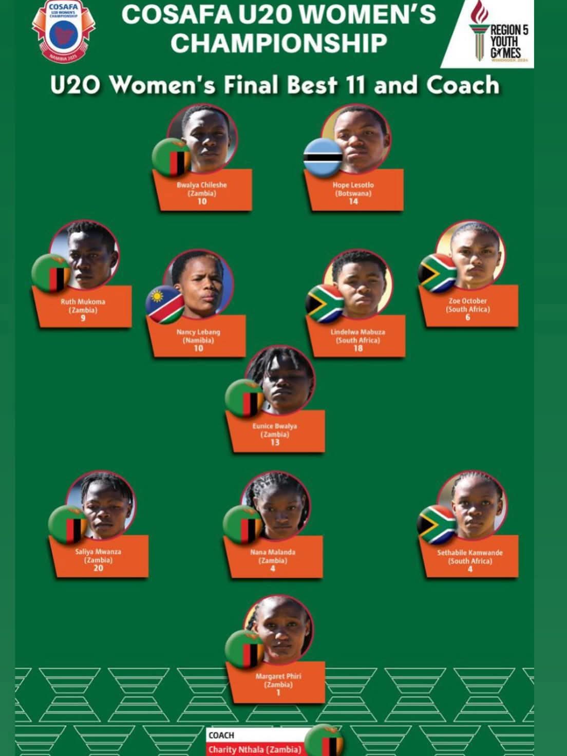 Margaret Phiri who did not concede a goal and was named goalkeeper of the tournament was named in the team best XI after keeping five clean sheets.