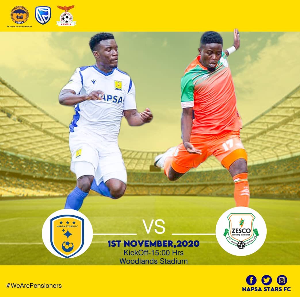 “Please note that our week one League game against Zesco United which was scheduled for Saturday has been pushed to Sunday, November 1, 2020. The venue remains Woodlands Stadium,” Napsa Stars media and public relations officer Gwen Mulundu Chipasula confirmed in a statement made available to the ZamFoot Crew.