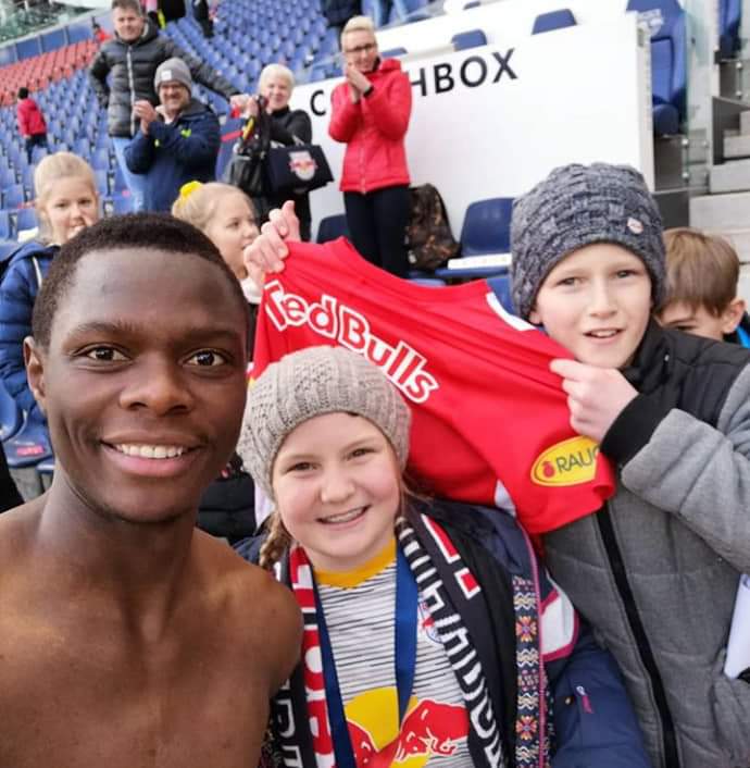 The 2017 CAF young player of the year’s recent stunt was making Redbull Salzburg fan Tobias’ dream of taking a picture and having a Patson Daka match day shirt come true.