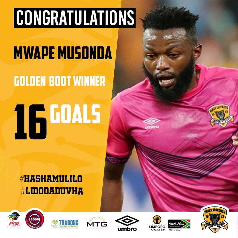 Musonda ended the season with 16 goals to win the PSL Golden boot .