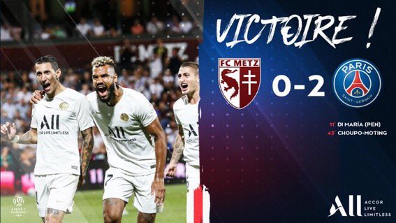 FRANCE|Angel Di Maria struck early from the penalty spot in the 11th minute before Choupo-Moting doubled the lead for giants French giants Paris Saint-Germain to condemn the newly promoted Ligue 1 side FC Metz to a 2-0 defeat in a week four(4) encounter played at Stade Saints-Symphorien.