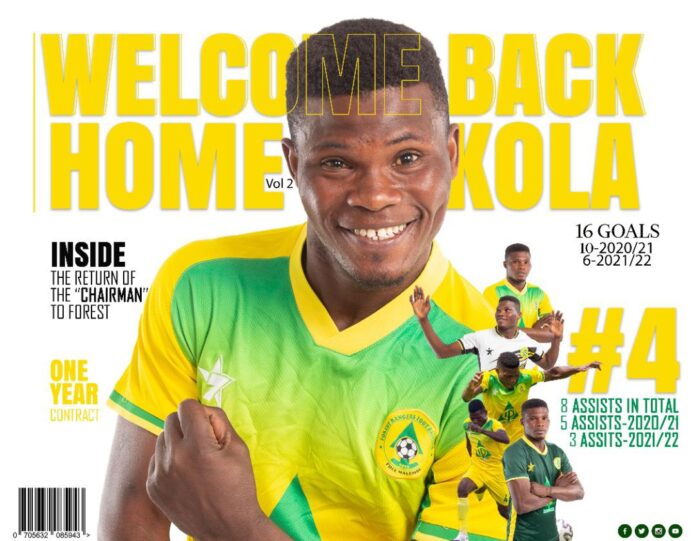 “Forest Rangers is pleased to announce the re-signing of striker Quadri Kola after the successful completion of negotiations.”