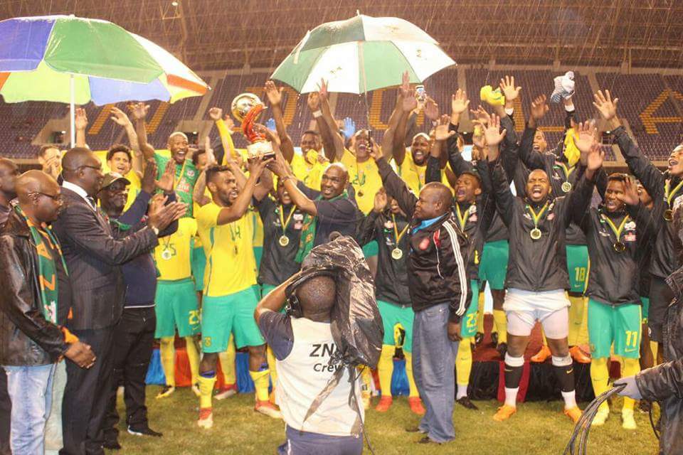 BAFANA BAFANA XI v Zambia: Itumeleng Khune – Thulani Hlatshwayo, Daniel Cardoso, Ramahlwe Mphahlele, Innocent Maela – Teboho Mokoena, Siphesihle Ndlovu, Kamohelo Mokotjo – Keegan Dolly, Sibusiso Vilakazi, Percy Tau.