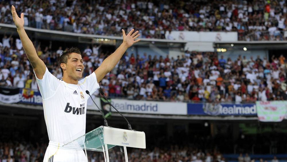 On 6th July 2009, Real Madrid unveiled a new player to the world, in front of 80,000 fans at the Bernabéu. The Portuguese winger,Cristiano Ronaldo, wearing the No9 jersey once worn by the Madrid great Alfredo di Stefano, was greeted rapturously by the packed stadium.