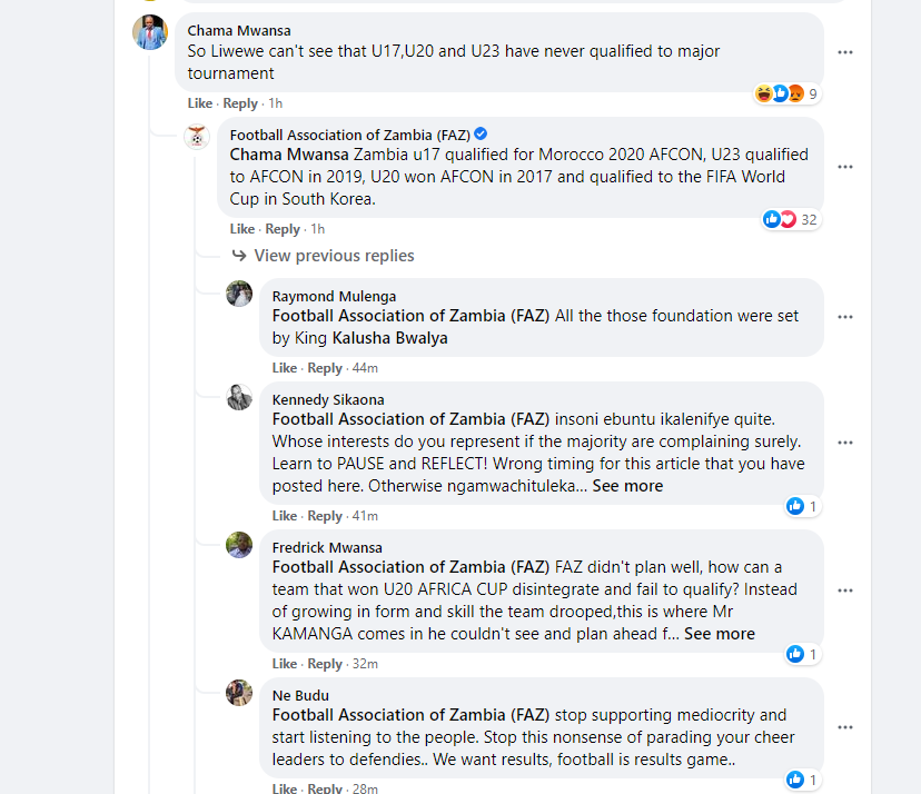 Rhodwell Silungwe –@Mike Sichula failure is measured on the national team performances my brother . look at Ghana who can remember that Ghana U20 played on world cup final, if the country’s economy is poor everyone blames the president
