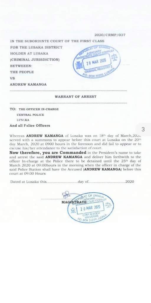 I noticed that many people wanted to see the leter from FIFA saying Kamanga remains president until the elective AGM because some thought it was fake. So I dug through my connections and I have retrieved it. (Kindly find attached hereto). I am also sharing one of the bench warrants issued against FAZ connected peope and in this case it is Andrew Kamanga the FAZ President.