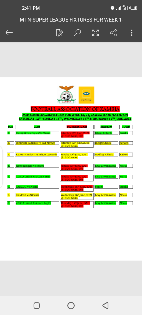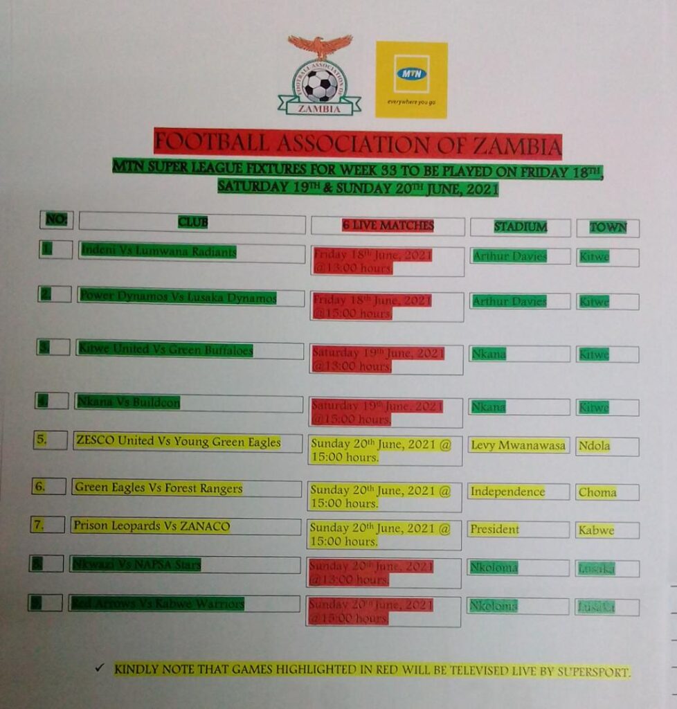 According to a schedule availed to the ZamFoot Crew, Week 18, 21, 28, and 32 will take center stage from Saturday 12th June to Thursday, 17th June.