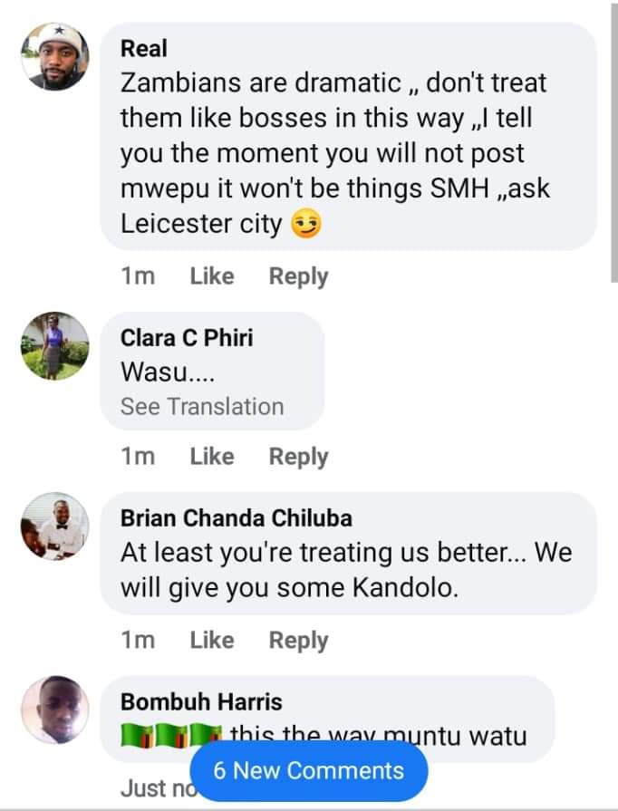 Brian Chanda Chiluba wrote “at least you are treating us better… We will give you kandolo (Sweet potatoes).