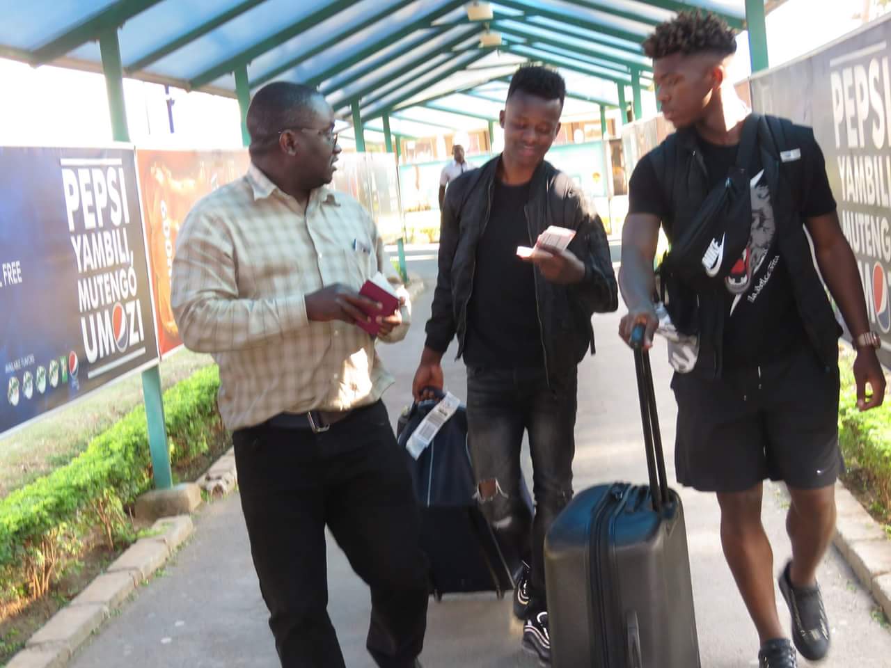 Wigan Athletic U-18 starlet Mwiya Malumo and Shrewsbury Town winger Lifumpa Mwandwe arrived at 14:40 hours aboard Emirates Airlines and were received at the airport by FAZ officials.
