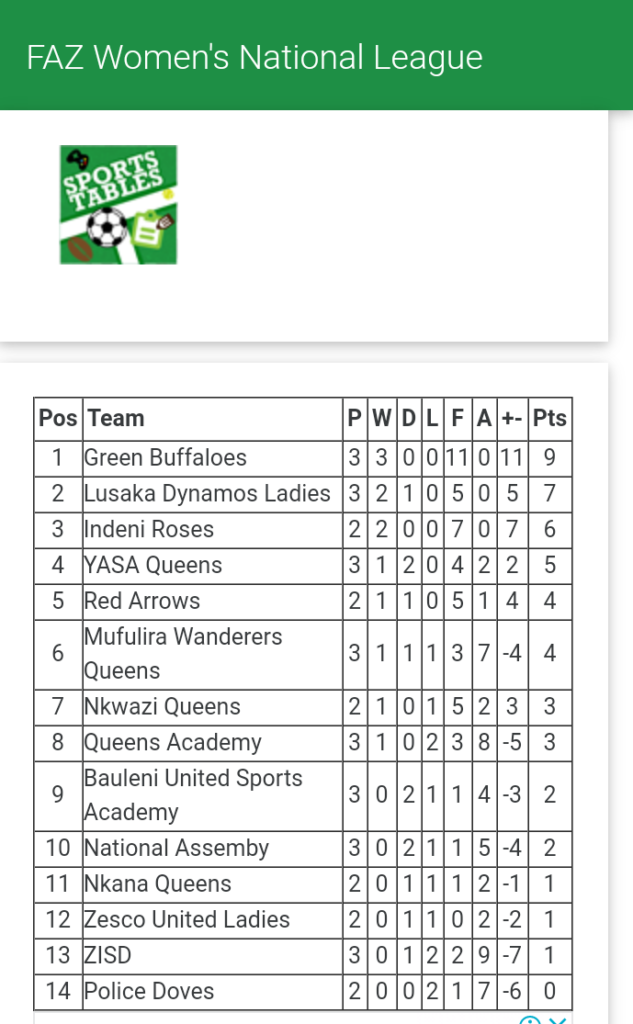 In the earlier games played this morning, in Kabwe at Jasmine Grounds, Queens Academy picked up their first points of the league with a comfortable 3-1 victory over struggling ZISD.