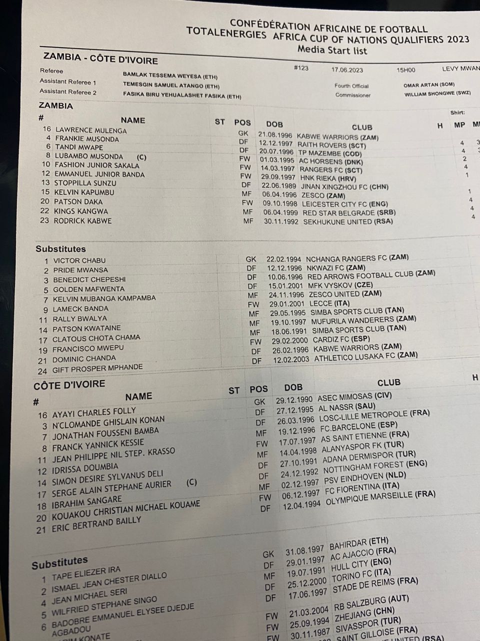 14:30 Zambia and Ivory Coast Team news