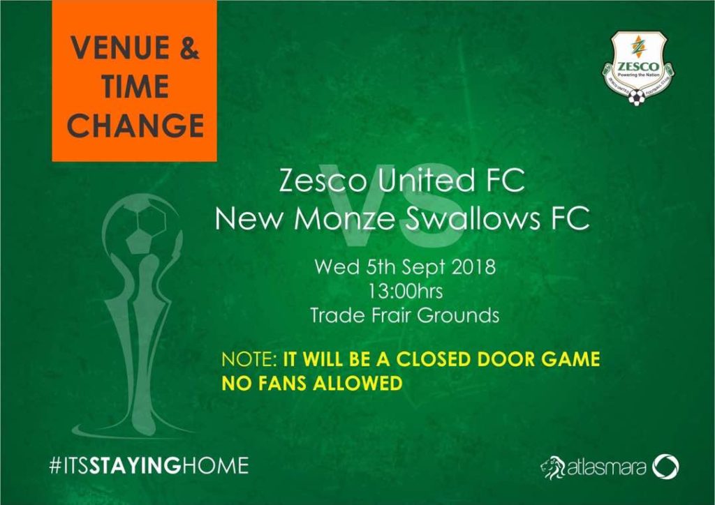 The match was initially set for Levy Mwanawasa Stadium at 15:00hrs but has been moved to Trade Fair at 13:00 hrs.
