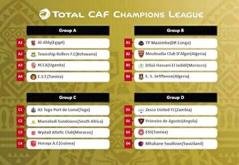 Botswana side Township Rollers will face Cairo giants Al Ahly and Esperance from Tunisia. The fourth side in Group A is Kampala City Council Authority.