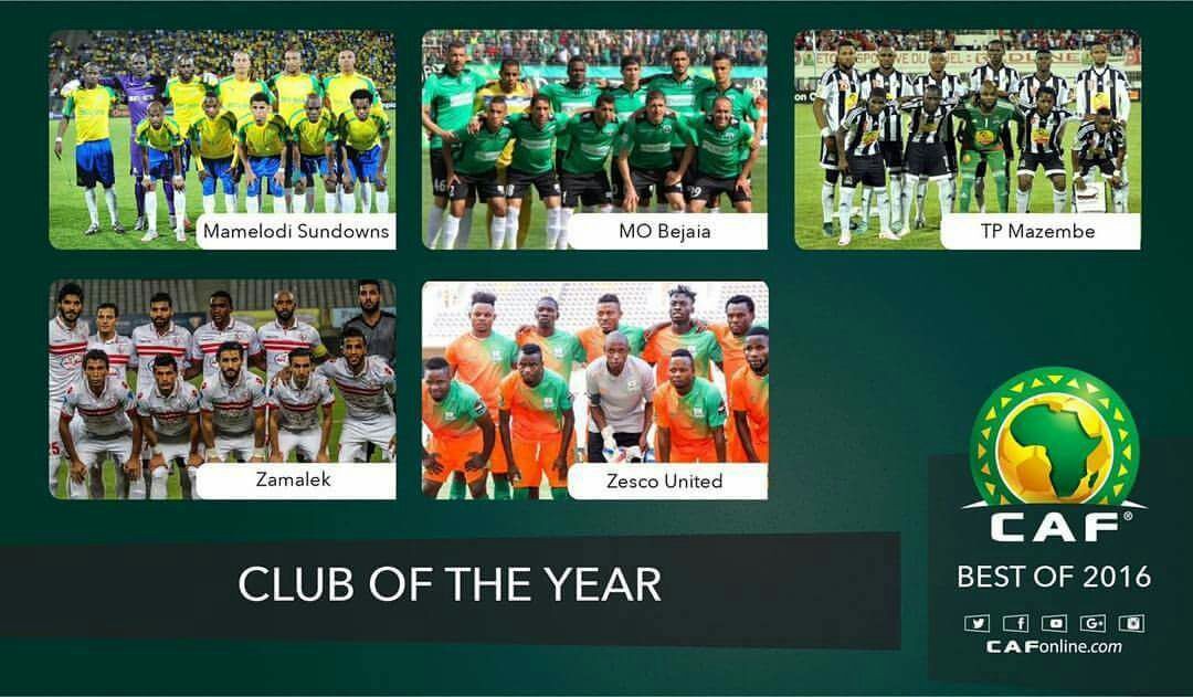Zesco United have been shortlisted for the CAF 2016 Club of the year award.